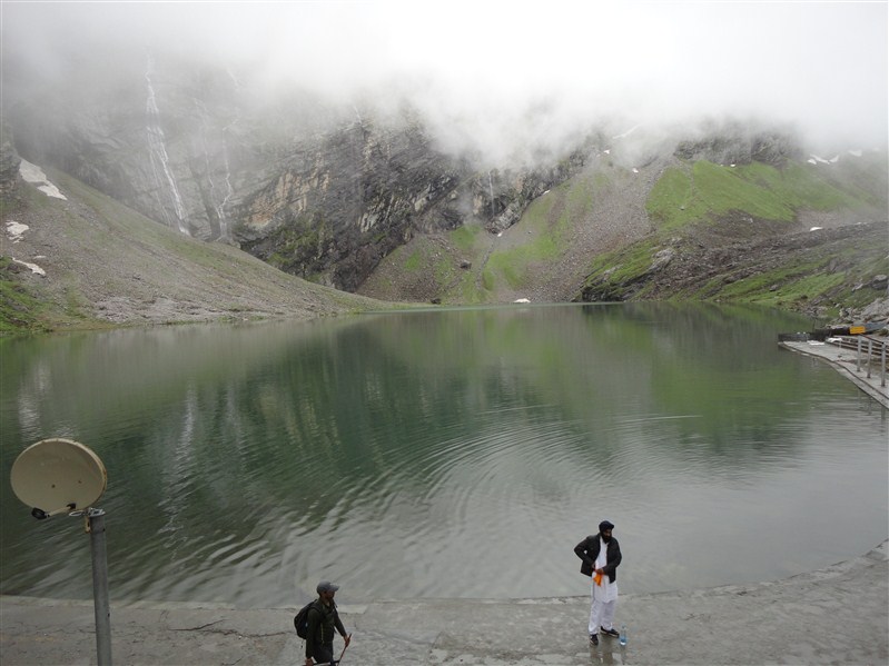 I check out the lake, but its all shrouded in mist. I decide to leave the spot. I return by the same way and its an easier trek downhill. Sunil and Saurabh decide to stay a little longer.